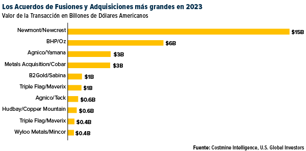 Estamos viendo una cantidad increíble de actividad de fusiones y adquisiciones (M&A) en el sector de la minería de oro. Los productores de oro están luchando por aumentar sus reservas orgánicamente debido a la falta de nuevos y grandes descubrimientos y a la disminución de las reservas en las minas existentes. Como resultado, muchas empresas están recurriendo a fusiones y adquisiciones como una forma de ampliar su producción y aprovechar el mercado alcista del oro. A continuación se muestran los 10 acuerdos mineros más importantes de 2023, comenzando con la adquisición de Newcrest por parte de Newmont por aproximadamente $ 15 billones.