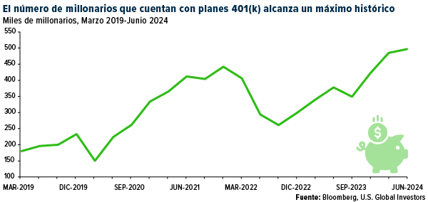 Se trata de una excelente noticia para los inversores en general, incluido el número récord de “millonarios 401(k)”, es decir, inversores que tienen un millón de dólares o más en sus cuentas de jubilación. Según Fidelity, ya hay casi medio millón de millonarios de este tipo… ¡y la cifra sigue aumentando!