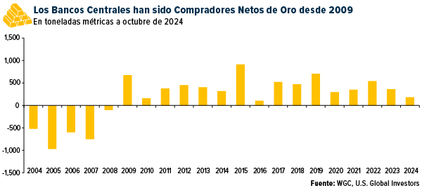 Con más de 36.000 toneladas métricas en reservas (alrededor de una quinta parte de todo el oro extraído en la historia), los bancos centrales saben algo que nosotros también deberíamos saber: El oro es una red de seguridad por excelencia. Desde 2009, estas instituciones han sido compradores netos del metal precioso y, solo en la última década, han adquirido una de cada ocho onzas producidas a nivel mundial.