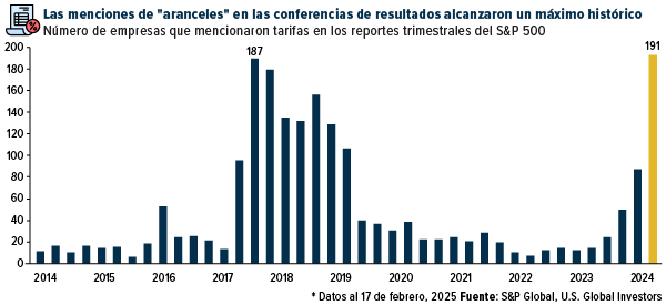 Los inversores están atentos: durante los últimos reporte de resultados, las empresas del S&P 500 mencionaron los “aranceles” un récord de 191 veces, más que en 2018 o 2019, cuando Trump impuso por primera vez aranceles a los productos chinos. El fabricante de ordenadores personales (PC) e impresoras HP Inc., por ejemplo, advirtió a los accionistas durante su presentación de resultados la semana pasada que “los actuales aumentos de los aranceles estadounidenses a China” afectarían la rentabilidad este año.