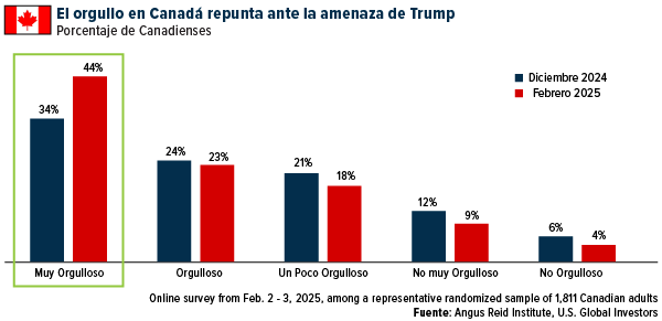 Si nos adelantamos hasta hoy, estamos viendo algunas tendencias inquietantemente similares, empezando por un aumento del orgullo canadiense. Debido a la retórica antagónica del presidente Donald Trump, vimos a los canadienses abuchear el himno nacional de Estados Unidos durante el partido de hockey 4 Nations Face-Off, y una encuesta reciente muestra que el orgullo canadiense ha aumentado 10 puntos desde diciembre de 2024.