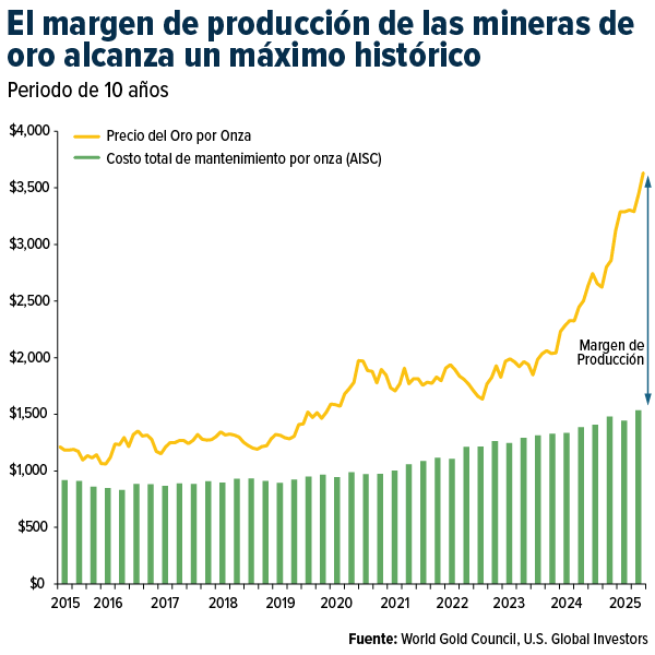 Considere las cifras. Los costos totales de mantenimiento (AISC) promedio para los principales productores oscilan entre $1,080 y $1,220 por onza. Con precios spot que triplican esa cifra, los márgenes son extraordinarios.