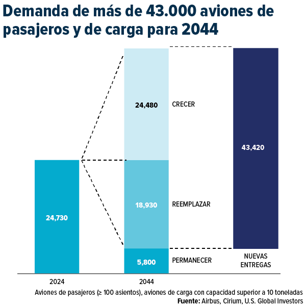 Se espera que la flota mundial duplique su tamaño para 2044
