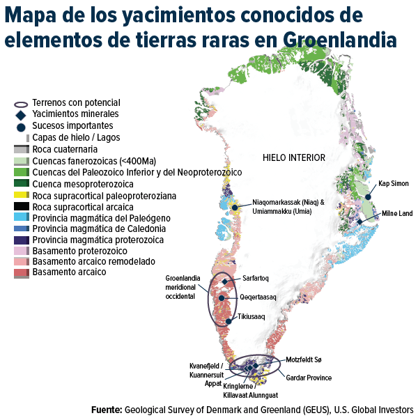 Pero lo que realmente acapara titulares son las tierras raras (TEI), los materiales que impulsan todo, desde aviones de combate hasta teléfonos inteligentes y sistemas de guiado de misiles. Según el Centro de Estudios Estratégicos e Internacionales (CSIS), Groenlandia ocupa el octavo lugar a nivel mundial en tierras raras comprobadas, con potencial para ascender aún más a medida que avanza la exploración.
