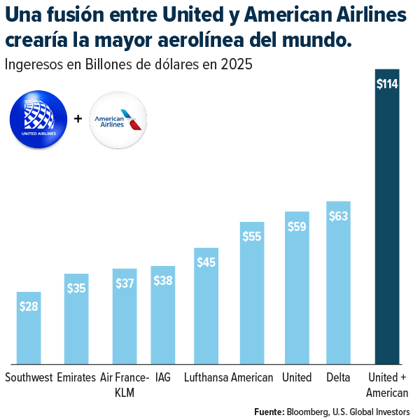 Una fusión entre United y American Airlines crearía la mayor aerolínea del mundo.